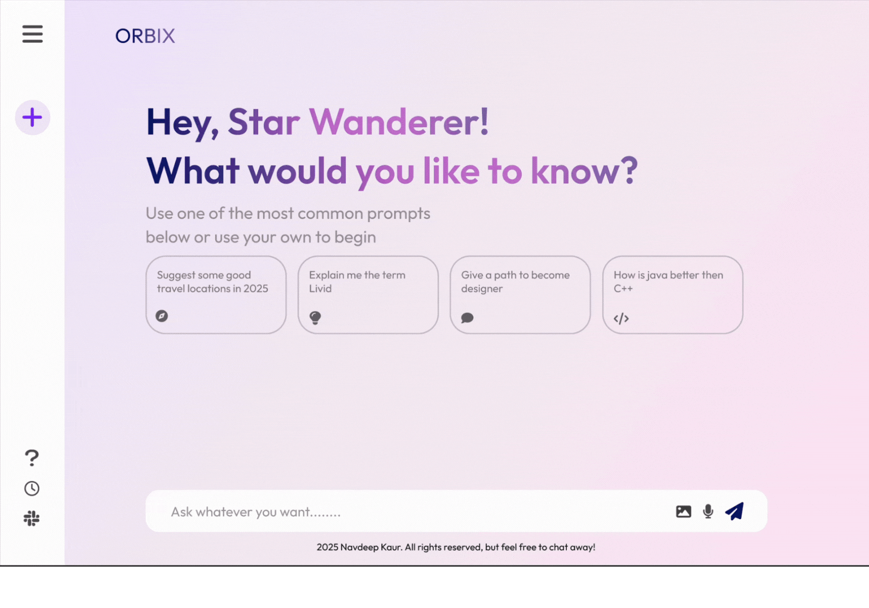 Hi, I’m Navdeep Kaur, a passionate UI/UX designer, front-end developer, and coding enthusiast. I thrive on creating visually appealing, user-friendly designs that seamlessly blend creativity with functionality, while also writing clean and efficient code to bring those designs to life.